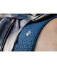 Czaprak firmy Kentucky. Zewnętrzna część czapraka wykonana jest z poliestru przypominającego bawełnę i ma eleganckie pikowanie w kształcie sześcianów. Po lewej stronie czapraka znajduje się niewielka naszywka ze skóry wegańskiej z logo Kentucky, pod logo znajduje się wystarczająco dużo miejsca na haft. Wyściółka czapraka to odprowadzająca wilgoć mieszanka bawełny i poliestru.