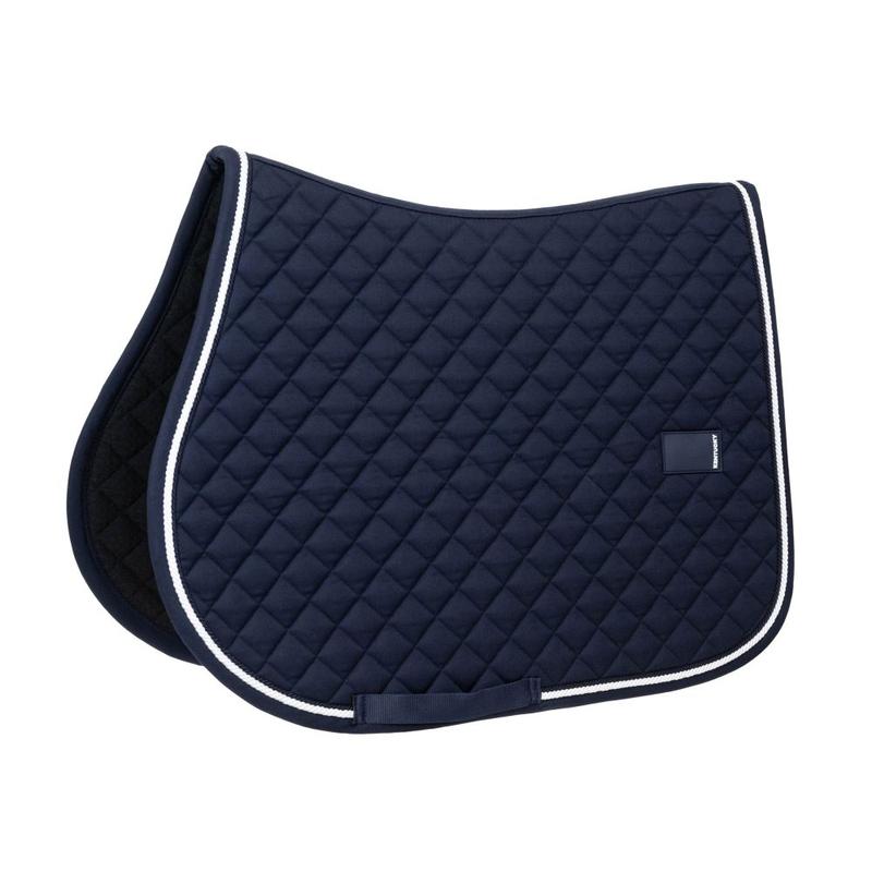 Czaprak firmy Kentucky. Posiada ozdobną lamówkę oraz pikowanie. Posiada tylko nylonowy pasek na popręg, nie posiada pasków do przymocowania do siodełka. Wykonany ze 100% poliestru.