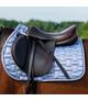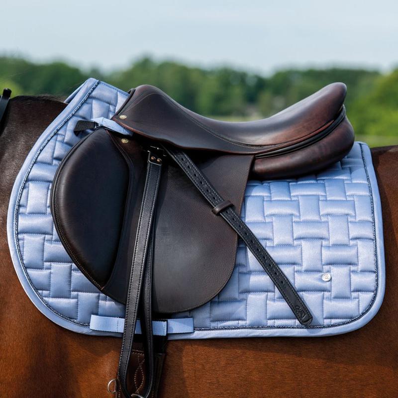 Czaprak posiada stylowy pikowany wzór oraz jest wykończony ozdobnym sznurkiem z brokatem.