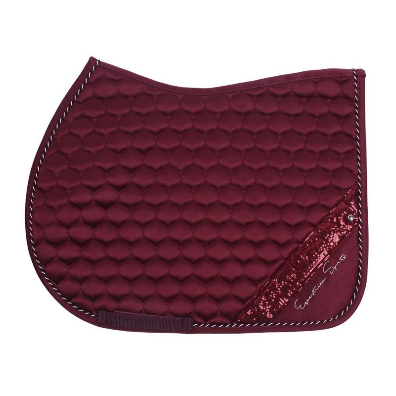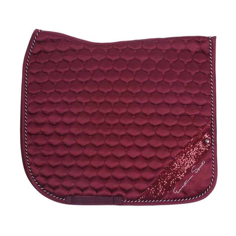 Czaprak Brilliance firmy QHP. Elegancki czaprak z dwoma ozdobnymi sznurkami i anatomicznie ukształtowanym tyłem. Czaprak jest wyposażony w szlufki na popręg i krótkie szlufki na siodło zapinane na rzep, aby zapewnić, że czaprak pozostanie na swoim miejscu.