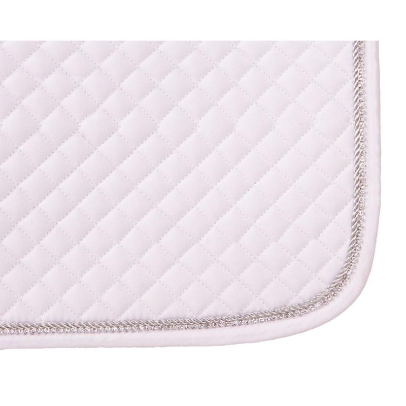 Czaprak Cali firmy QHP, to propozycja dla jeźdźców lubiących odrobinę blasku. Cyrkonie wzdłuż ozdobnego sznurka zapewniają szykowny wygląd. Wyposażony w pętle popręgu, która zapewnia pozostanie czapraka na swoim miejscu.