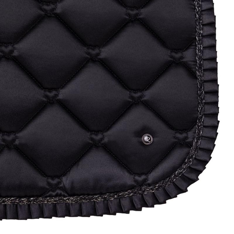 Czaprak QHP Lissie. Podszyty chłonną siateczką, która dobrze wchłania pot. Wyposażony w krótkie pętle D-ring z zapięciami na rzepy. Wyposażony w pętle popręgu.