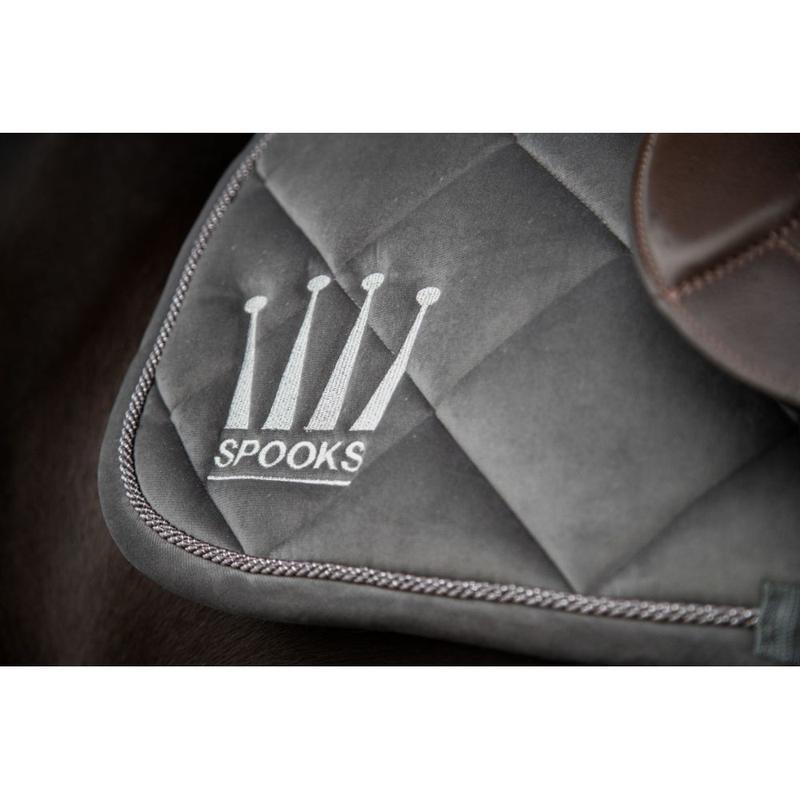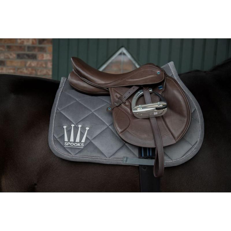 Elegancki czaprak z wysokiej jakości aksamitnej tkaniny. Czaprak Crown Velvet ma charakterystyczną koronę SPOOKS wyhaftowaną po obu stronach. Design czapraka skokowego dopełnia błyszczący, ozdobny sznurek. Dzięki anatomicznemu krojowi oraz pętlom na popręg i siodło, ten czaprak skokowy bezpiecznie trzyma się pod siodłem.