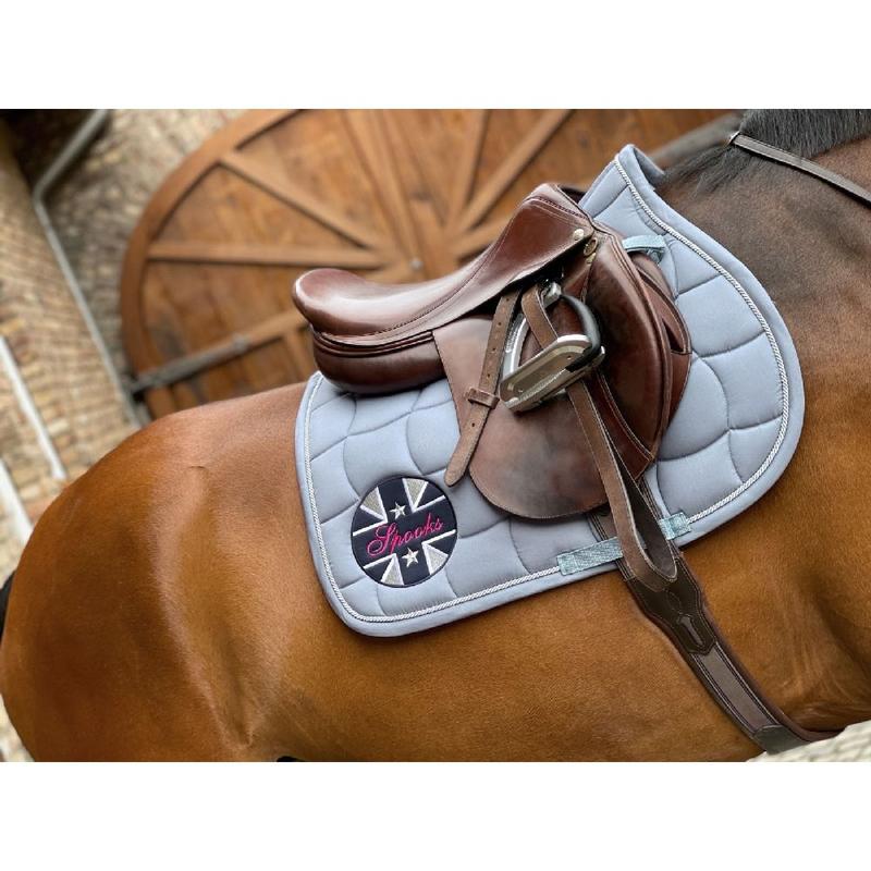 Czaprak firmy Spooks. Naszywka z logo SPOOKS po obu stronach. Srebrny ozdobny sznurek po obu stronach. Materiał zewnętrzny: 100% poliester Wypełnienie materiałowe: 100% poliester. Instrukcja pielęgnacji: prać w pralce w temperaturze 30°C, nie nadaje się do suszarek, delikatne wirowanie.