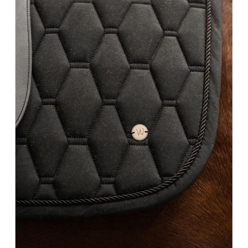 Czaprak ujżdżeniowy firmy Waldhausen. Wysokiej jakości czaprak z kwiatowym pikowaniem i aplikacjami. Podszewka zapewnia dobrą oddychalność oraz dobre wchłanianie potu.
