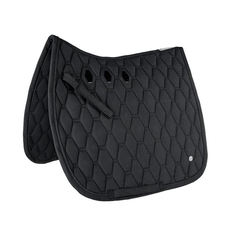 Czaprak Eskadron z kolekcji Classic Sports. Model posiada duże pikowanie z wypełnieniem średniej grubości, które zapewnia dobrą amortyzację i stabilność pod siodłem. W obszarze siodła zastosowano antypoślizgowe powierzchnie silikonowe, które pomagają utrzymać siodło na miejscu.