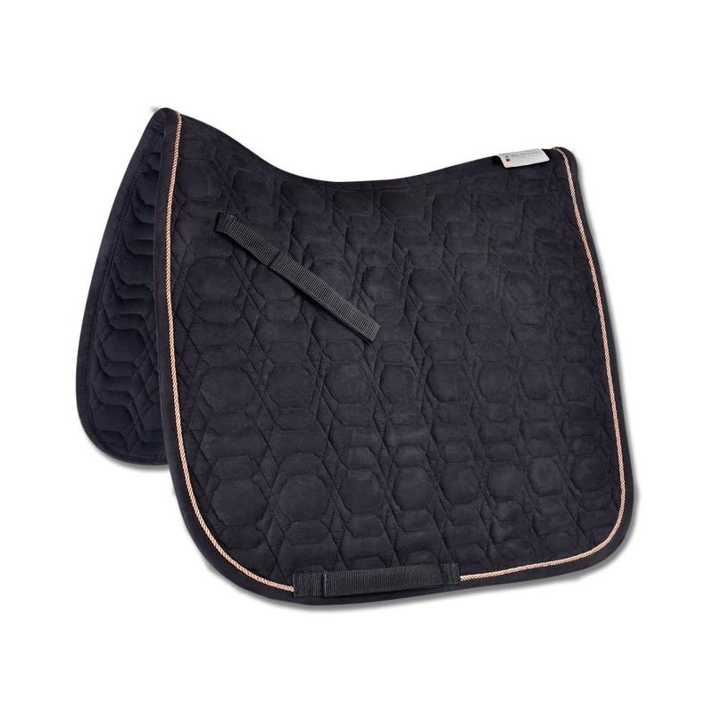 Czaprak Eskadron z kolekcji Classic Sports. Model posiada duże pikowanie z wypełnieniem średniej grubości, które zapewnia dobrą amortyzację i stabilność pod siodłem. W obszarze siodła zastosowano antypoślizgowe powierzchnie silikonowe, które pomagają utrzymać siodło na miejscu.