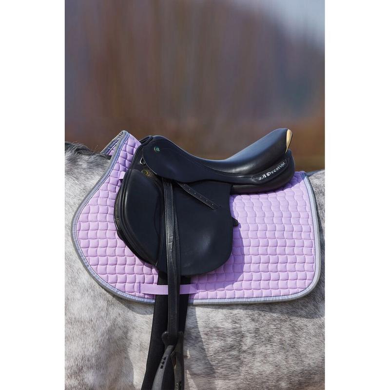 Czaprak firmy Horze. Uszyty z miękkiej bawełny. Ozdobiony i wykończony miękką, parcianą, dwukolorową lamówką. Posiada kwadratowe pikowani, miękkie wypełnienie i paski na rzepy do przymocowania czapraka do przystuł. Ozdobiona logo Horze wyhaftowanym na kłębie.