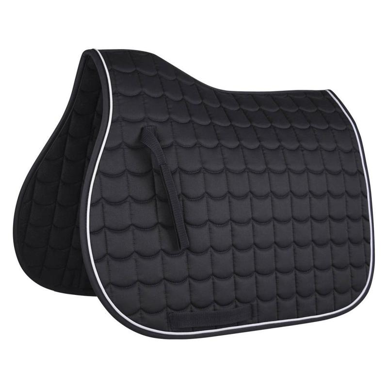 Czaprak Ajax marki York miękko podszyty, wyposażony w praktyczną szlufkę na popręg. Wykończony dookoła ozdobnym sznurkiem. Anatomiczny kształt sprawia, że doskonale leży nawet na mocno wykłębionym koniu.