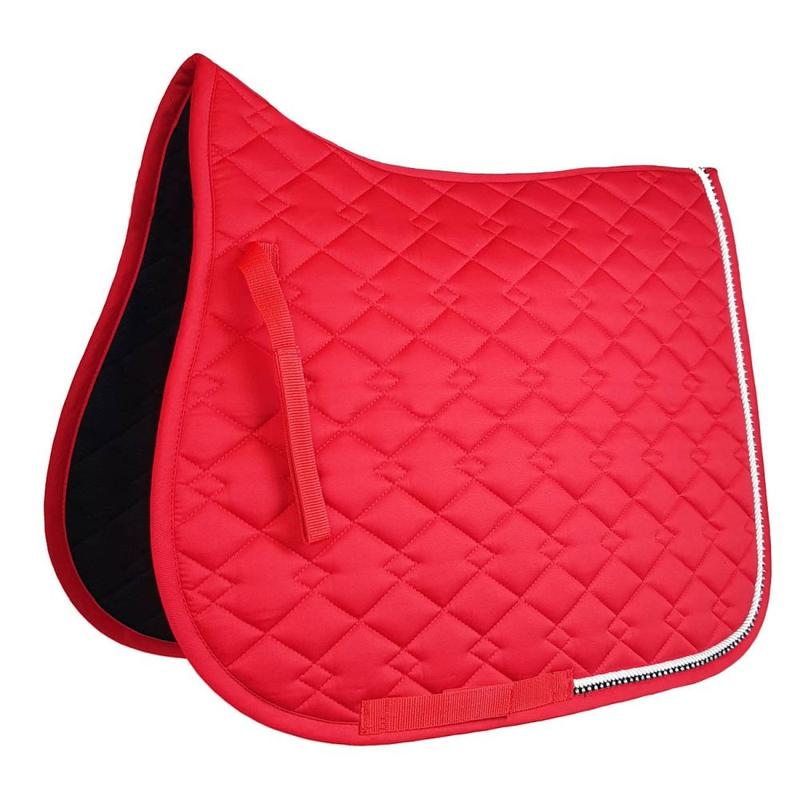 Czaprak o anatomicznym kształcie, ozdobiony oryginalnie wyglądającym pikowaniem, sznurkiem oraz cyrkoniami, które nadają mu bardzo oryginalnego wyglądu. Od spodu podszyty materiałem Coolmax, doskonale odprowadzającym wilgoć oraz zwiększającym przewiewność.