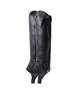 Czapsy „Combi” wykonane są z imitacji skóry, co sprawia, że są bardzo łatwe w pielęgnacji. Strefa stretch po zewnętrznej stronie łydki zapewnia idealne dopasowanie. Czapsy zapinane są od dołu do góry zamkiem błyskawicznym oraz dodatkowym zatrzaskiem.