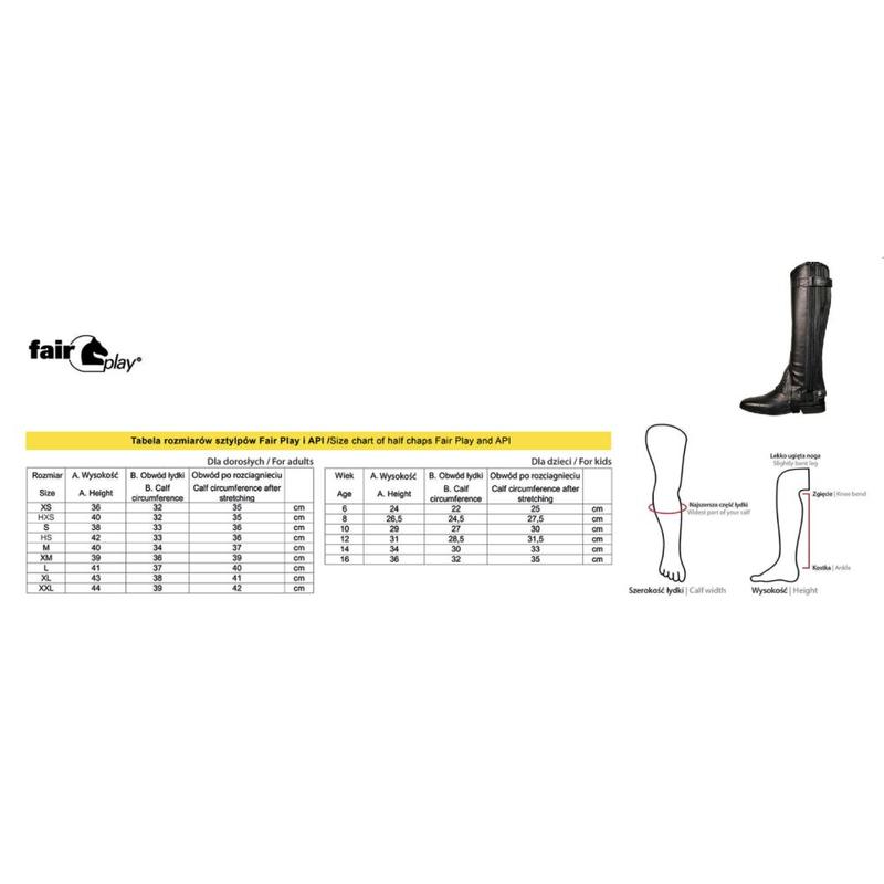 Sztylpy Basic firmy Fair Play. Klasyczny model wykonany ze skóry syntetycznej. Zapinane na zamek wszyty z boku. Zastosowano elastyczną wkładkę dzięki której idealnie dopasują się do łydki.