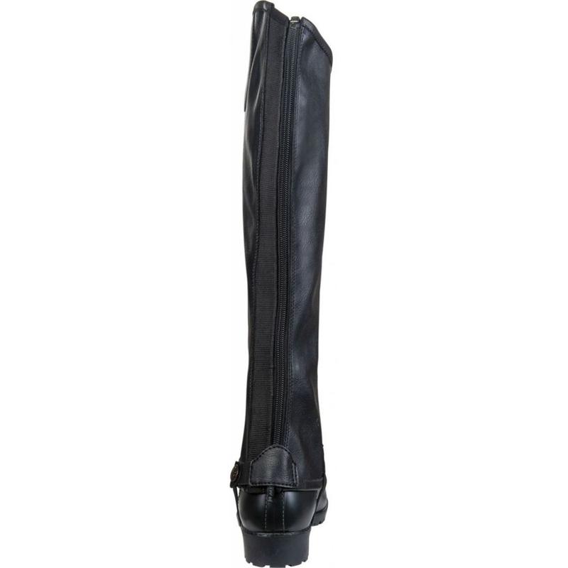 Czapsy „Combi” wykonane są z imitacji skóry, co sprawia, że są bardzo łatwe w pielęgnacji. Strefa stretch po zewnętrznej stronie łydki zapewnia idealne dopasowanie. Czapsy zapinane są od dołu do góry zamkiem błyskawicznym oraz dodatkowym zatrzaskiem.