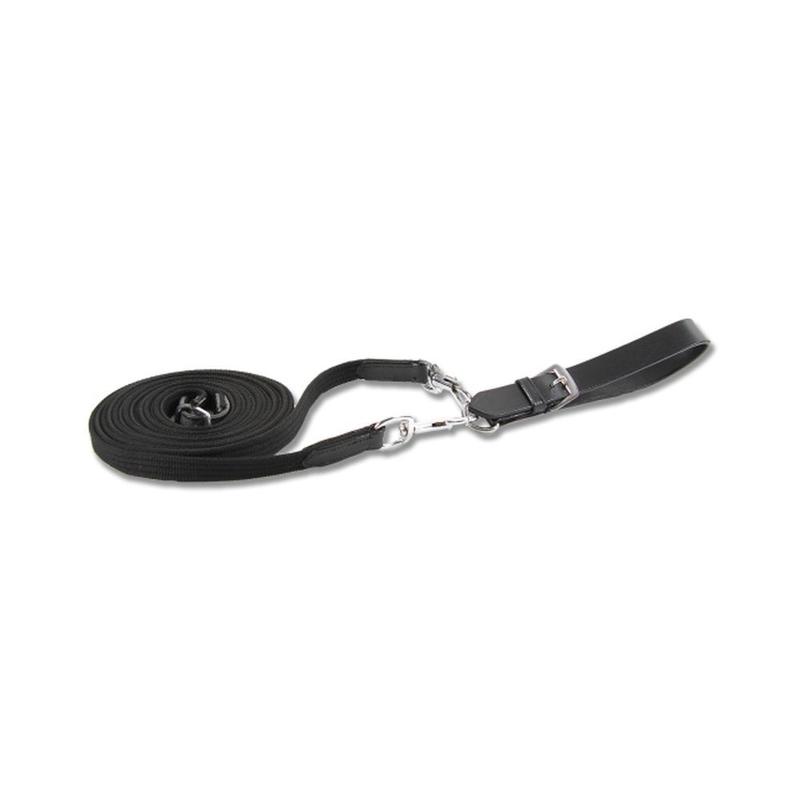 Lonża firmy HKM. Wyposażona w karabińczyk oraz stabilne sprzączki. Długość 8m.Skład materiału: 100% poliester