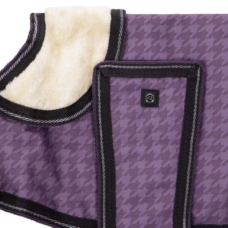 Derka dla psa Glossy z kolekcji Classic Sports jesień-zima 2018. Wykonana z połyskującego materiału, podszyta ciepłym polarem. Pikowana. Ozdobiona na grzbiecie modnym lampasem. Posiada rozpinany kołnierz z delikatnym futerkiem. Regulowana na napy.