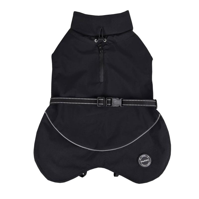 Derka dla psa Busse wykonana z poliestru. Odporna na wiatr i wodę. Wygodna i przyjemna w dotyku podszewka. Posiada regulowane zapięcia na rzep z przodu i na brzuchu oraz elastyczne paski na nogi z tyłu. Ozdobiona po lewej stronie odblaskiem.