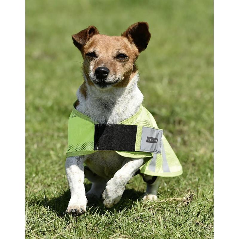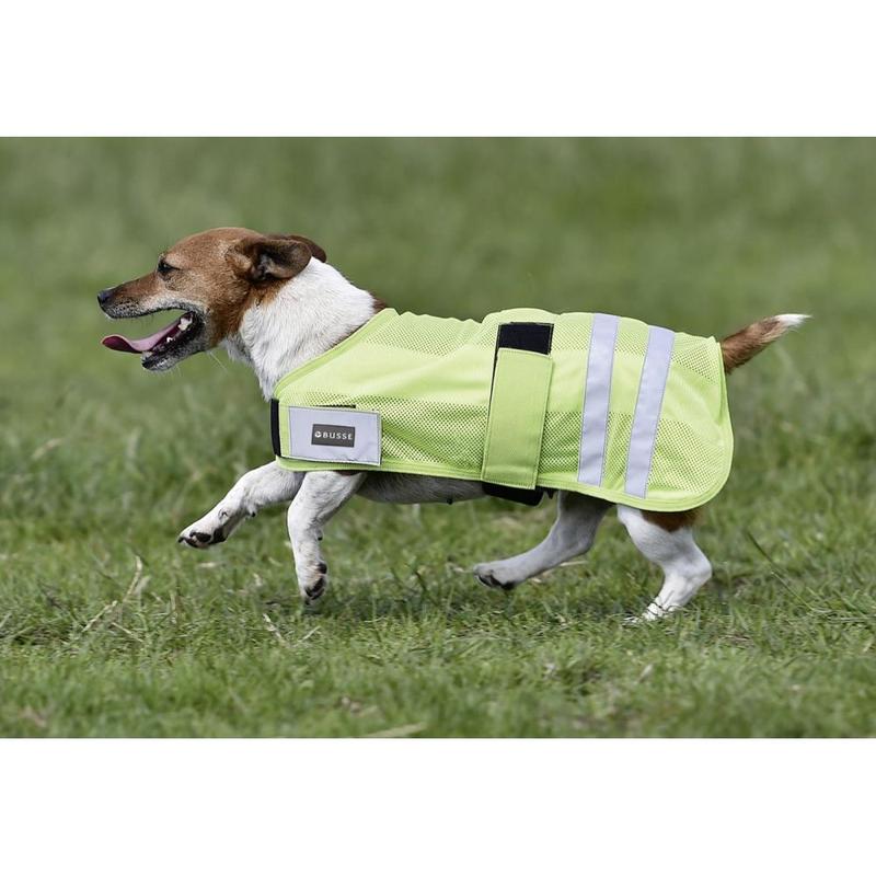 Derka dla psa Busse wykonana z poliestru. Posiada odblaskowe zapięcie na rzep umieszczone na klatce piersiowej oraz zapięcie pod brzuchem również na rzep. Zapewnia widoczność psa w każdych warunkach.
