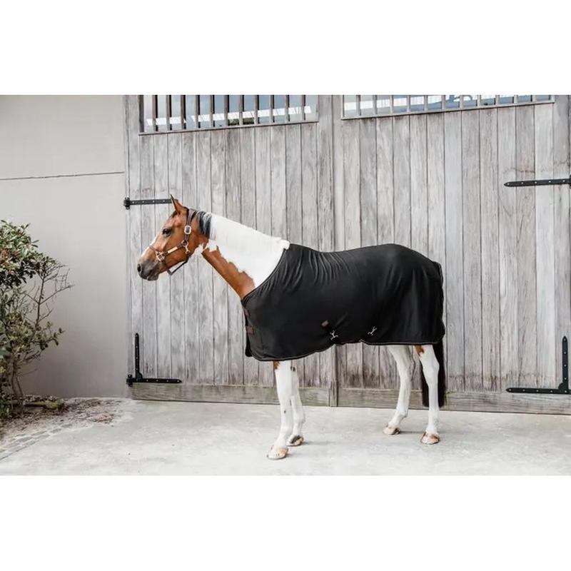 Lekka bawełniana derka firmy Kavalkade idealna na letnie i przejściowe miesiące. Obszar ramion składa się z gładkiej poliestrowej podszewki. Klapa na ogon, głęboki pasek na ogon i poprzeczne pasy zapobiegają ślizganiu się i zapewniają doskonałe trzymanie derki na koniu. Klasyczny krój. Materiał: bawełna, poliester
