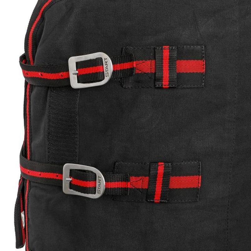 Derka Bucas - Materiał zewnętrzny wykonany jest z poliestru i jest gładko tkany. Oznacza to, że żadne siano, słoma ani inne zabrudzenia nie mogą utknąć na zewnątrz. W obszarze ramion zastosowano jedwabiście miękką wyściółkę wewnętrzną, która zapobiega tarciu i zwiększa komfort noszenia.