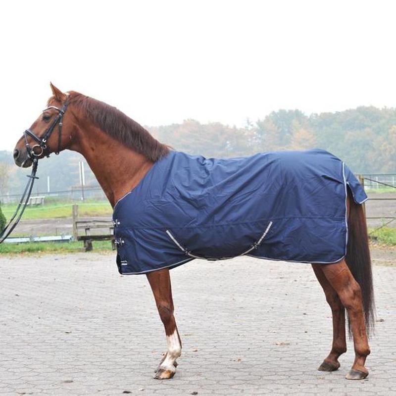 Derka padokowa Economic Winter firmy HKM. Z zewnątrz wykonana z wytrzymałego materiału 600d, wnętrze wypełnione 250g waty poliestrowej. Posiada wysoki krój, z przodu podwójne zapięcie z regulacją oraz paski do wiązań wyposażone w metalowe sprzączki między