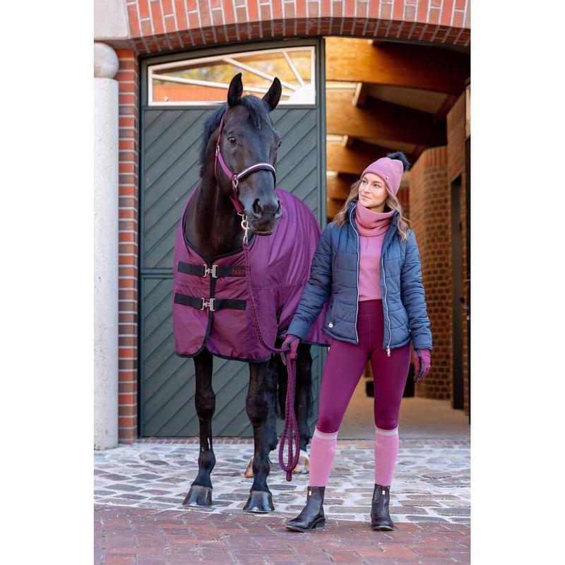 Derka wodoodporna Waldhausen posiada podwójne zapięcia z przodu w kształcie litery T zapewniają idealne dopasowanie. Lamówka z odblaskowymi detalami zwiększa widoczność w warunkach słabego oświetlenia. Zakładka kick zapewnia dużą swobodę ruchu. Materiał zewnętrzny o grubości 600 denierów jest trwały i zapewni Twojemu koniowi ciepło i suchość.Materiał...