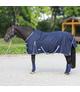 Derka przeciwdeszczowa firmy York. Derka wykonana z materiału o grubości 600D, który chroni przed deszczem, podszyta materiałem poliestrowym. Praktyczne rozcięcia w okolicy łopatek poprawiające komfort noszenia, przy kłębie podszycie ze sztucznego futerka, chroniące przed obtarciami,zapinana z przodu na dwa karabińczyki i rzep. Pod brzuchem pasy krzyżowe, zakończone po jednej stronie elastyczną wstawką, elastyczne pasy mocujące na nogi, wodoodporność: 3000 mm