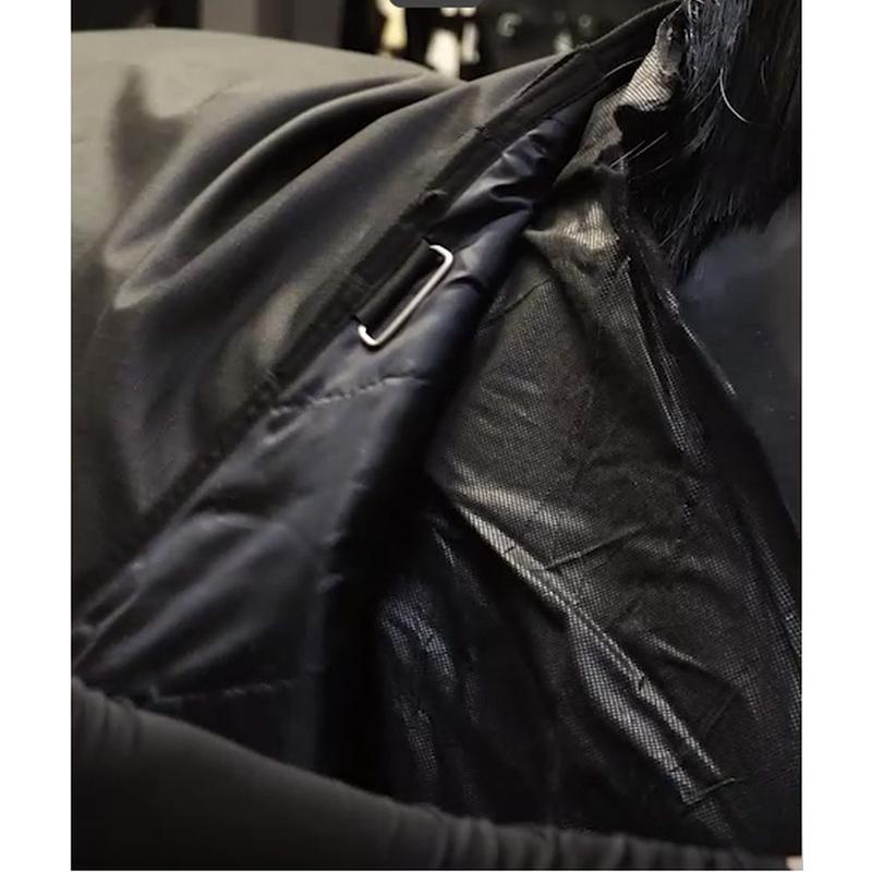 Wysokiej jakości przeciwdeszczowa, ocieplana derka z odpinanym kapturem. Wykonana z wodoodpornego, oddychającego materiału.-wodoodporny i oddychający materiał-zapinany kaptur, mocowany do derki za pomocą elastycznych taśm z rzepami-polarowe podszycie w okolicy kłębu zapobiegające obtarciom-elastyczne pasy mocujące na nogi oraz pasy krzyżowe pod brzuchem z...