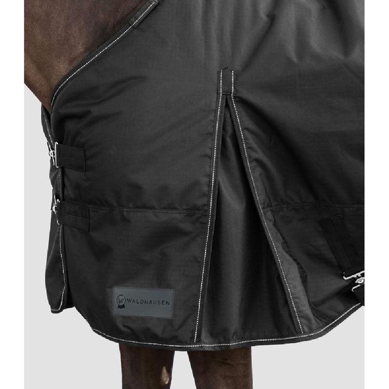Derka wodoodporna Waldhausen posiada podwójne zapięcia z przodu w kształcie litery T zapewniają idealne dopasowanie. Lamówka z odblaskowymi detalami zwiększa widoczność w warunkach słabego oświetlenia. Zakładka kick zapewnia dużą swobodę ruchu. Materiał zewnętrzny o grubości 600 denierów jest trwały i zapewni Twojemu koniowi ciepło i suchość.