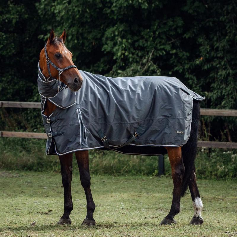 Derka padokowa marki Horze o doskonałym, ulepszonym kroju. Wodoszczelna, odporna na rozdarcie i ścieranie dzięki ulepszonemu materiałowi. Mocne zapięcie na piersi, pasy krzyżowe pod brzuchem, klapa na ogon, pasy zapinane na karabińczyki.