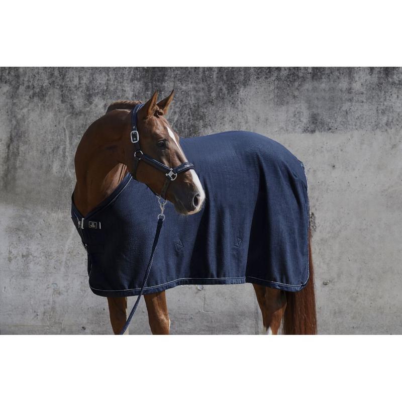 Lekka bawełniana derka firmy Kavalkade idealna na letnie i przejściowe miesiące. Obszar ramion składa się z gładkiej poliestrowej podszewki. Klapa na ogon, głęboki pasek na ogon i poprzeczne pasy zapobiegają ślizganiu się i zapewniają doskonałe trzymanie derki na koniu. Klasyczny krój. Materiał: bawełna, poliester