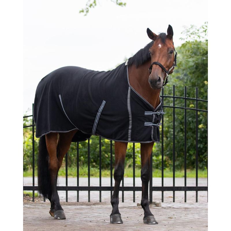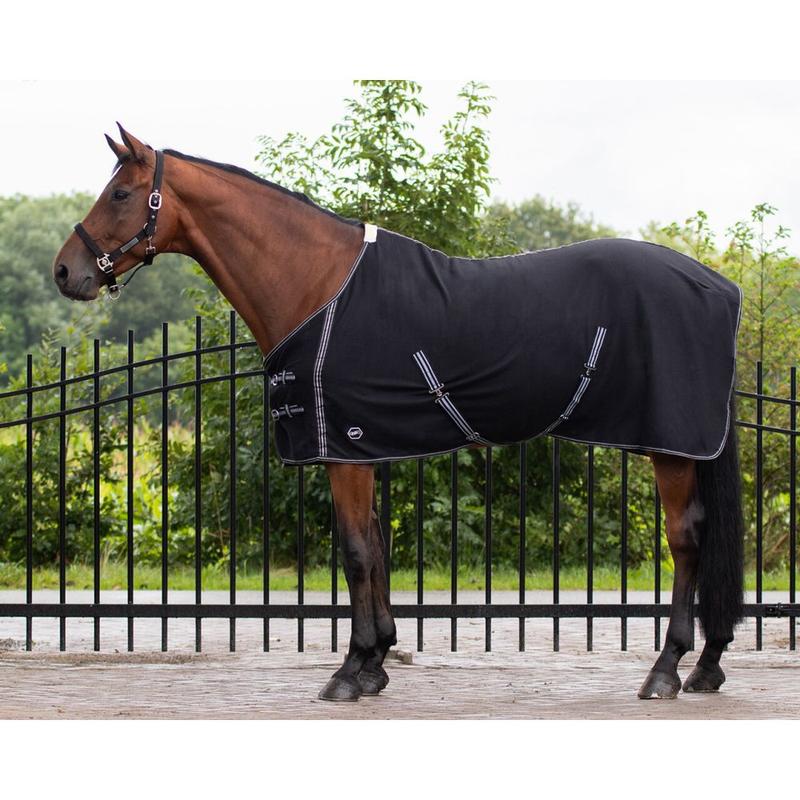 Oddychająca derka polarowa firmy HKM Polar. Posiada odpinane paski krzyżowe oraz metalowe zamknięcia. Można prać w pralce w 30 stopniach. Nadaje się do suszenia w suszarce.