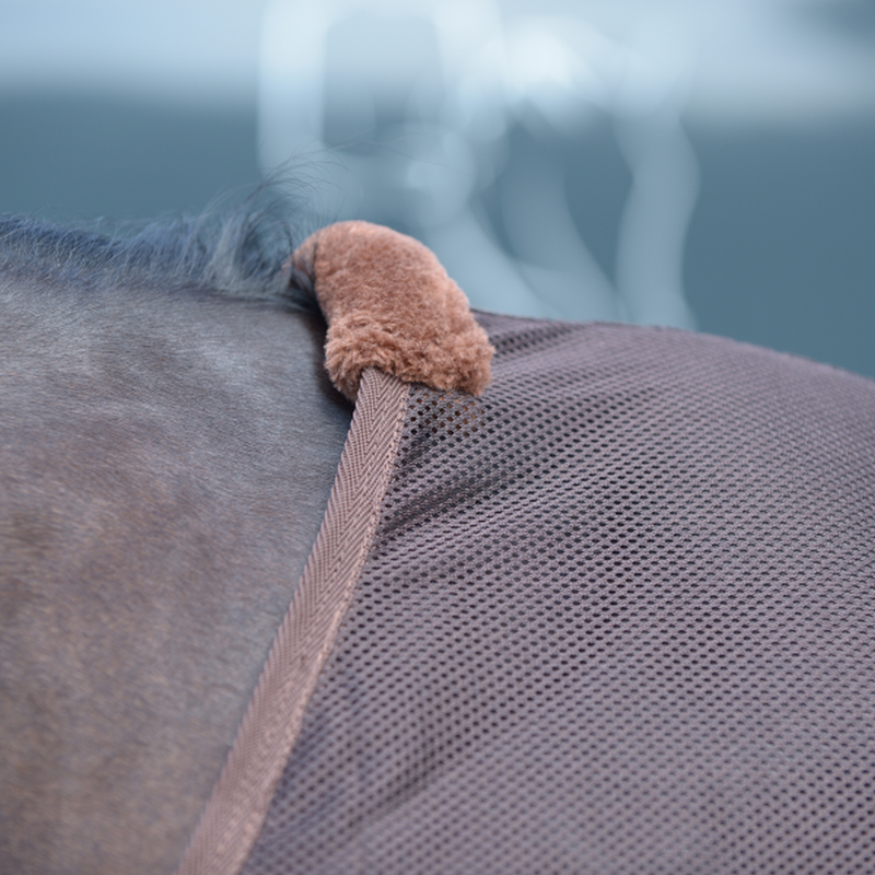 Szczególnie funkcjonalna derka przeciw owadom firmy Kavalkade. Wykonana z poliestrowej siatki, która przepuszcza powietrze i zapewnia optymalną ochronę przed muchami i owadami. Z podwójnym zapięciem obrotowym, paskiem na ogon, odpinaną klapą na brzuch i szyjką. Idealny na pastwisko lub padok.Materiał: siatka poliestrowa