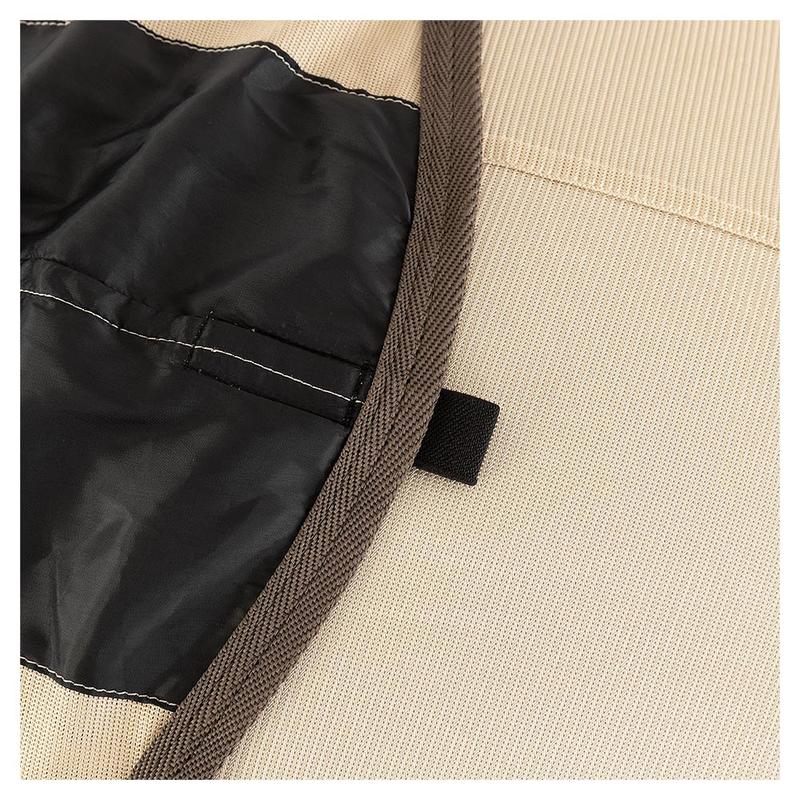 Derka BR - posiada kaptur, regulowane pasy krzyżowe, trzy gerulowane paski z przodu oraz posrebrzane klamry.