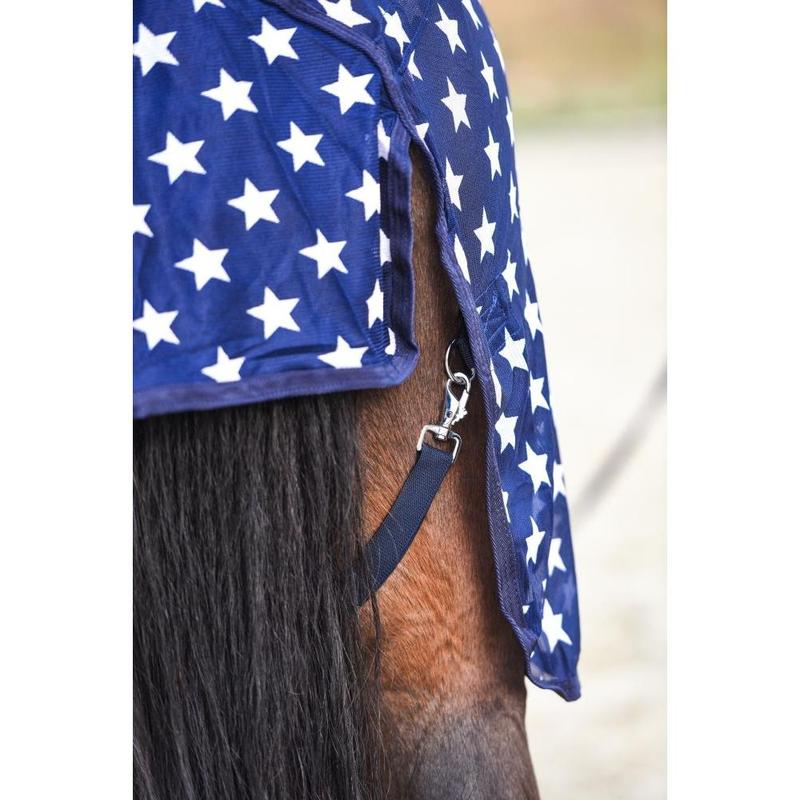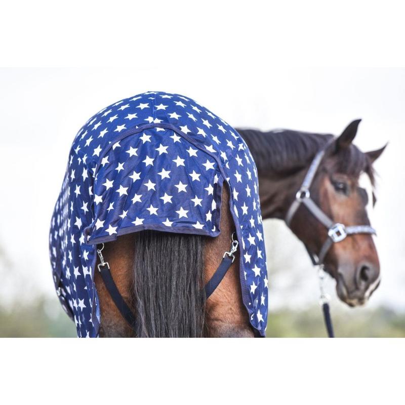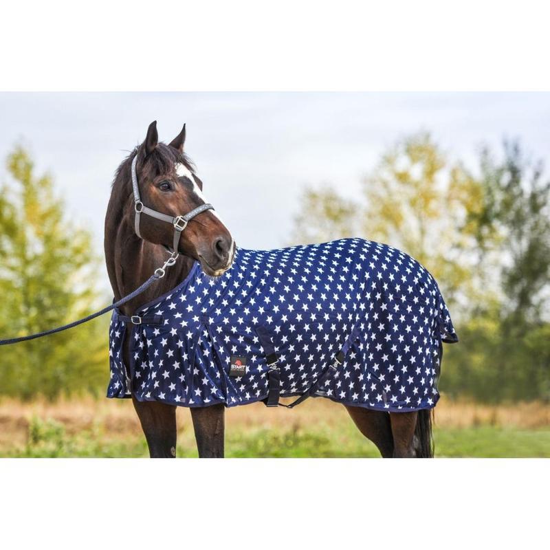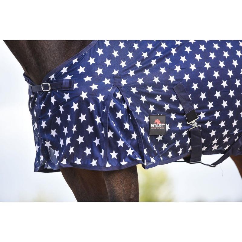 Derka siatkowa firmy Start z modnym wzorem w gwiazdki. Drobne oczka siatki ochronią konia nawet przed meszkami. Idealna na padok oraz do stajni.