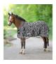 Derka siatkowa Zebra firmy HKM. Derka stosowana podczas jazdy oraz treningu w celu ochrony konia przed owadami. Wykonana z trwałego i mocnego materiału odpornego na podarcie. Wyposażona w nieodpinany kaptur oraz wiązanie pod ogonem. Materiał 100% polieste