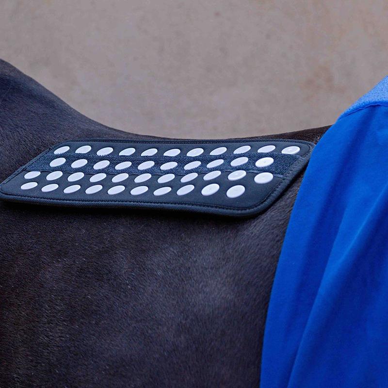 Kołnierz terapeutyczny na szyję Bemer, jest idealny do stosowania regeneracji mięśni w obrębie . Aplikator jest ergonomicznie zaprojektowany z oddychającymi wstawkami z siatki i może być łatwo nakładany na szyję konia o różnych rozmiarach dzięki prostym paskom mocującym. Pozwala to na aplikację od kłębu do karku. Aplikator na szyję może być używany...