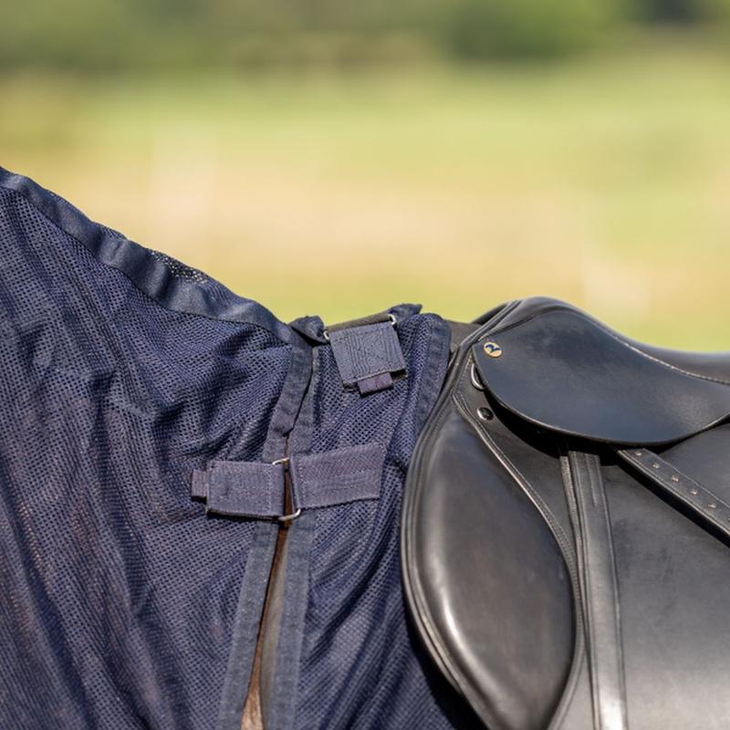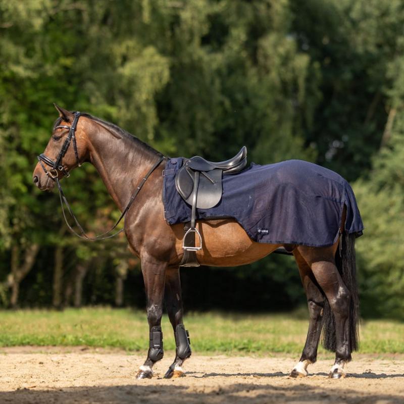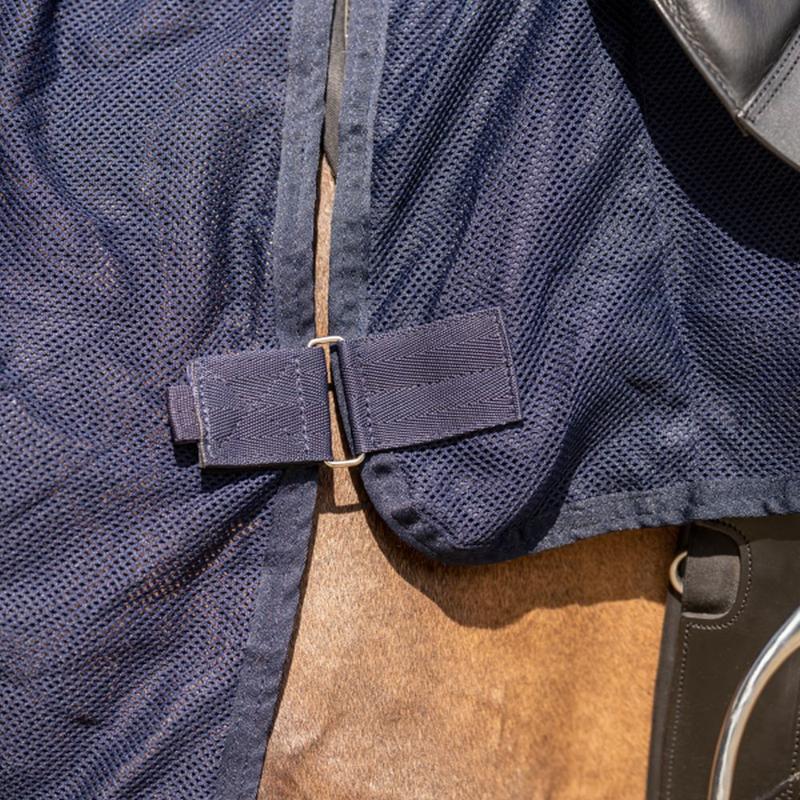 Szczególnie funkcjonalna derka przeciw owadom firmy Kavalkade. Wykonana z poliestrowej siatki, która przepuszcza powietrze i zapewnia optymalną ochronę przed muchami i owadami. Z podwójnym zapięciem obrotowym, paskiem na ogon, odpinaną klapą na brzuch i szyjką. Idealny na pastwisko lub padok.Materiał: siatka poliestrowa