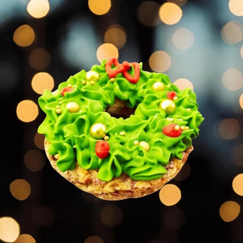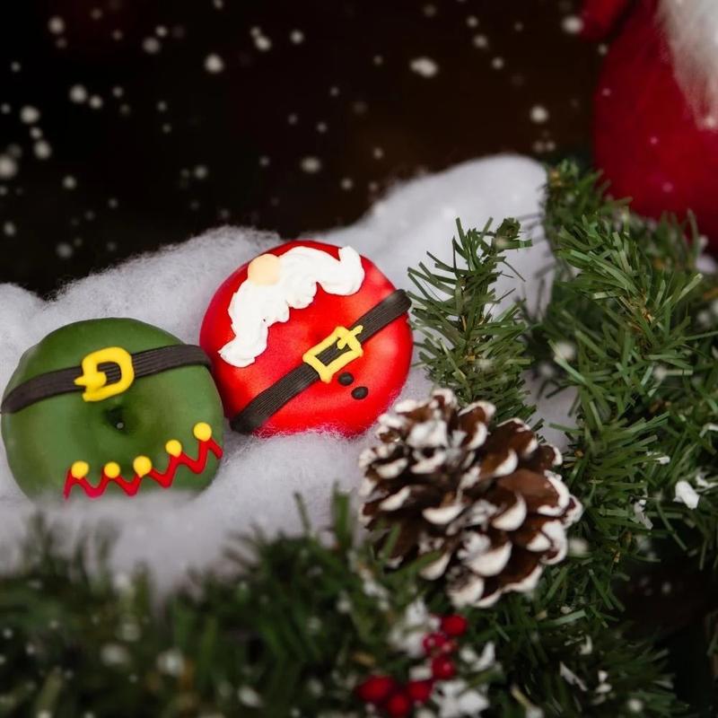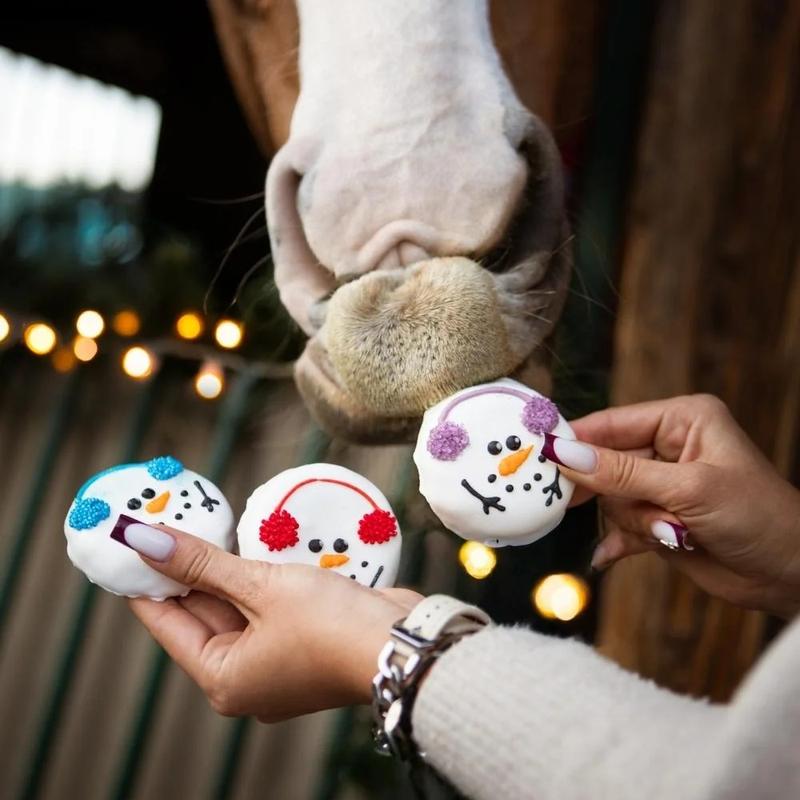 Naturalne smakołyki dla koni w kształcie małych donut-ów z motywem bożonarodzeniowym firmy Końska Cukierenka. Smakołyki są wykonane w 100% z naturalnych, oczyszczonych produktów i nie zawierają sztucznych aromatów, barwników ani konserwantów.