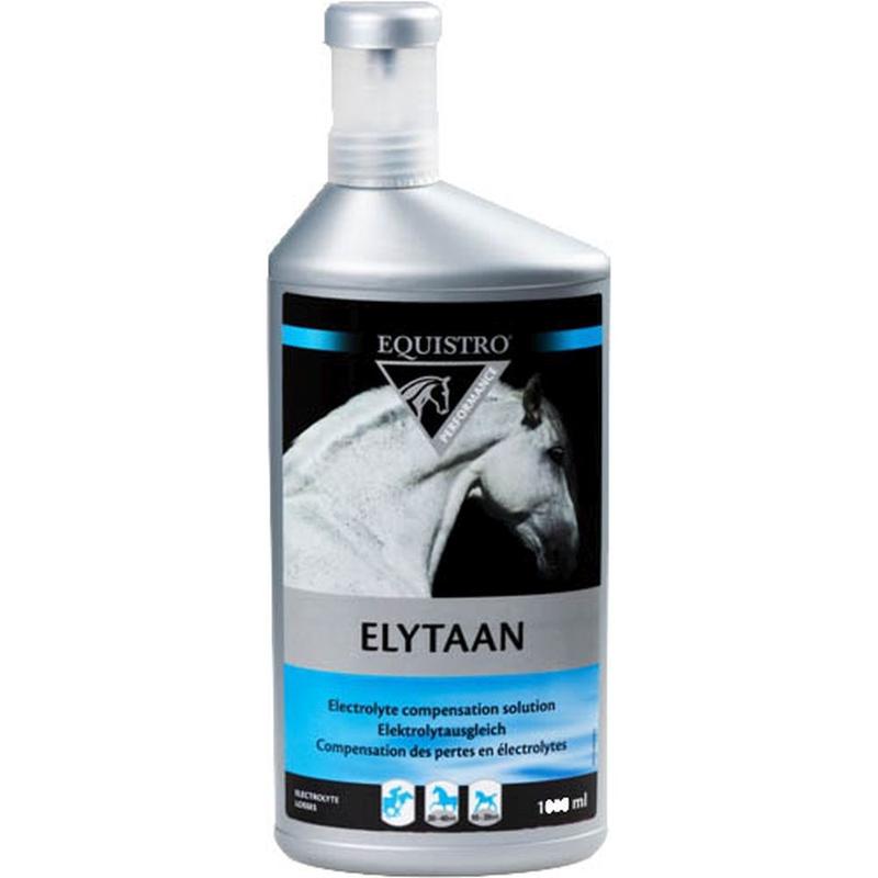 Elytaan firmy Equistro to płynny preparat wspomagający gospodarkę wodno-elektrolitową. Jego składniki wpływają stymulująco na przyjmowanie płynów przez konia i częściowo uzupełniają straty NaCI. Zawiera witaminy z grupy B, makro- i mikroelementów oraz aminokwasy. Preparat dostarcza składniki odżywcze niezbędne do przemian energetycznych. Pojemność: 1000 ml.