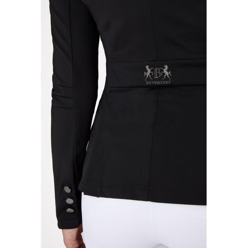 Frak damski w klasyczny krój firmy Aubree B Vertigo. Wykonany z mocnego, rozciągliwego materiału. Wyposażony w podszewkę z siateczki i wstawki z siateczki po bokach. Ozdobiony wyhaftowanym logo producenta na rękawie.Materiał: 80% Nylon 20% Elastan.