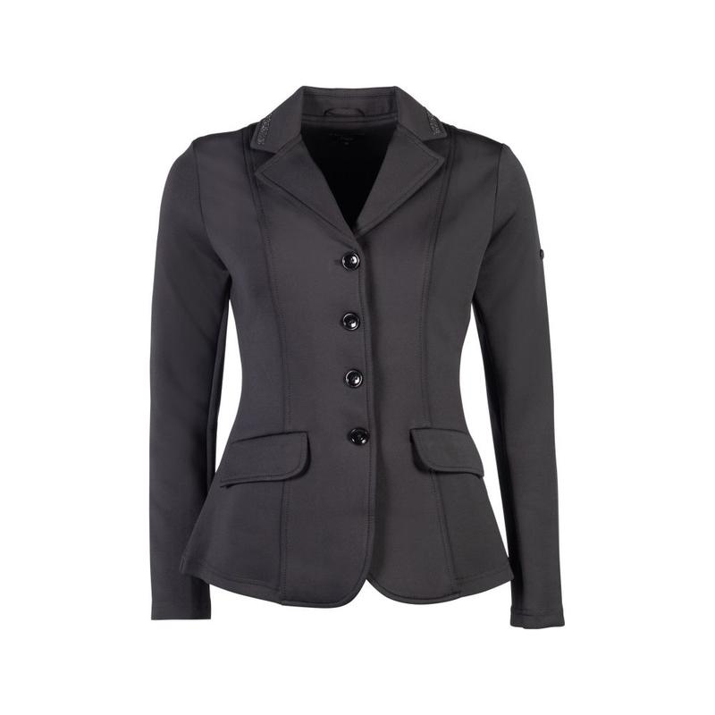 Frak ujeżdżeniowy HKM JillWykonany z oddychającego, elastycznego materiału. Ozdobiony delikatnymi kryształkami. Materiał: 60% nylonu, 32% poliestru, 8% elastanu.