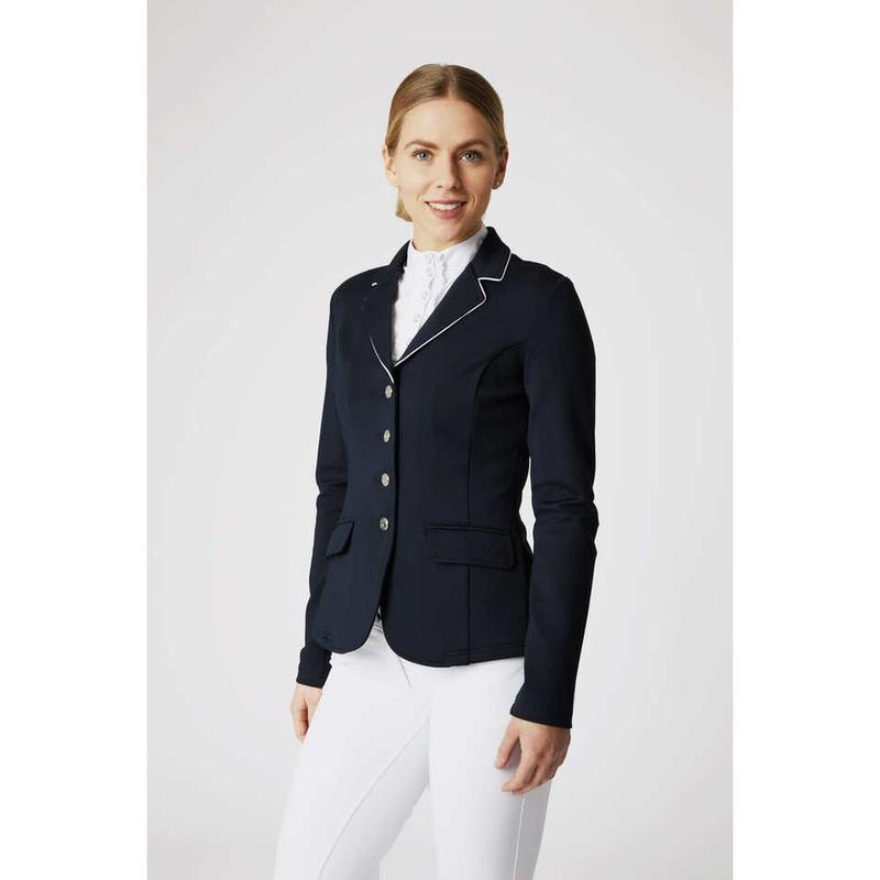 Frak damski firmy Horze. Posiada miękki, przewiewny i elastyczny materiał nie krępujący ruchów. Zwężany krój zgrabnie podkreśla sylwetkę. 94% poliester, 6% elastan.