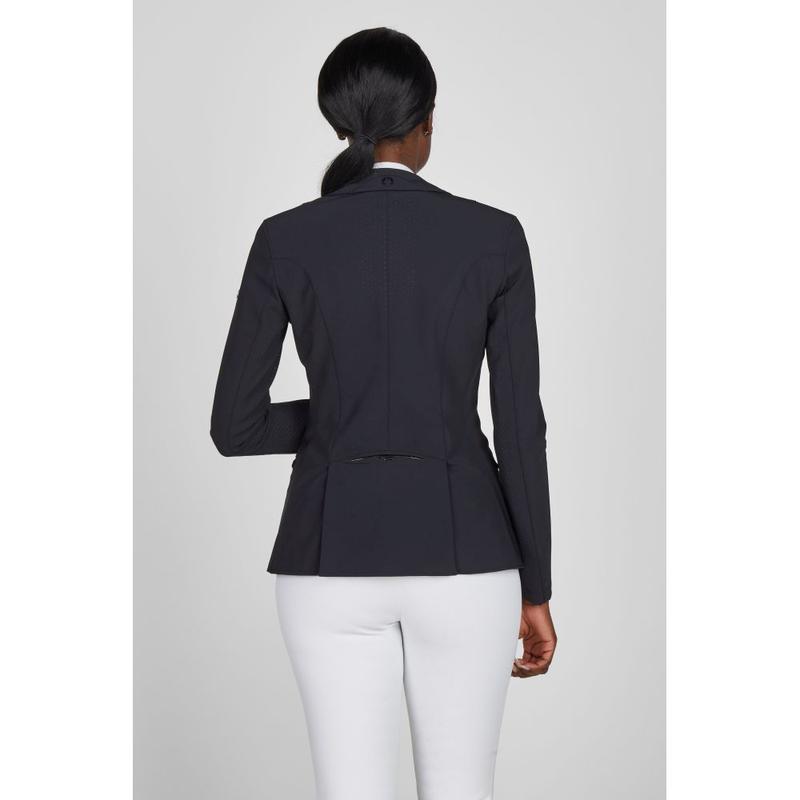 Frak damski z firmy Pikeur z kolekcji wiosna-lato 2026/ Funkcjonalny materiał typu tech-jersey, wygodny w noszeniu. Wykonany z elastycznego w 4 kierunkach materiału dla maksymalnego komfortu noszenia. Oddychający i szybkoschnący. Laserowo wycinane otwory wentylacyjne pod pachami i na środku pleców . Ukryty zamek błyskawiczny i guziki z przodu dla...