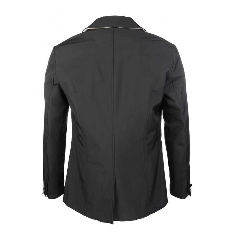 Elegancki klasycznie skrojony frak ujeżdżeniowy z kolekcji wiosna-lato 2025. Z cyrkoniowymi aplikacjami. Fraczek zapinany dodatkowo na zamek. Wykonany z materiału Tech-Jersey.Tkanina siateczkowa na bokach i pod pachami. Podszewka: przepuszczająca powietrze tkanina siateczkowa. Aplikacja z kryształków olimpijskich na kołnierzu, pasie i krawędziach....
