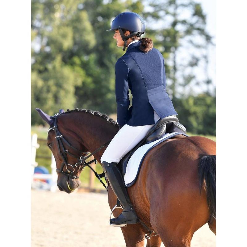 Elegancki klasycznie skrojony frak Pikeur z kolekcji wiosna-lato 2025. Wykonany z super lekkiej tkaniny typu Airmesh, zapewniającej iealną cyrkulację powietrza i swobodę ruchu. Materiał nie prześwituje. Materiał: 60% poliester, 40% elastan.