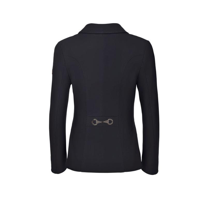 Frak młodzieżowy manila firmy Pikeur. Nasze młode amazonki mogą mieć cudowny, wygodny fraczek z dodatkami w różowym złocie w połączeniu z granatem. Z tyłu w talii piękne wędzidełko cyrkonii. Czarny materiał ma dodatki w świecącej czerni. Rękaw z zapasem daje możliwość przedłużenia do 5 cm.