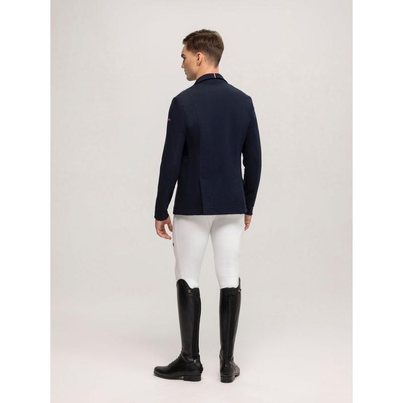 Elegancki klasycznie skrojony frak ujeżdżeniowy z kolekcji wiosna-lato 2025. Z cyrkoniowymi aplikacjami. Fraczek zapinany dodatkowo na zamek. Wykonany z materiału Tech-Jersey.Tkanina siateczkowa na bokach i pod pachami. Podszewka: przepuszczająca powietrze tkanina siateczkowa. Aplikacja z kryształków olimpijskich na kołnierzu, pasie i krawędziach....