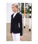 Frak młodzieżowy Zayla firmy Horze. Wykonany z elastycznego, lekkiego, oddychającego letniego materiału. Zapinany na trzy guziki i ozdobiony kryształowymi detalami na kieszeniach.Matreiał: 12% Nylon 85% Rayon 3% Elastan.