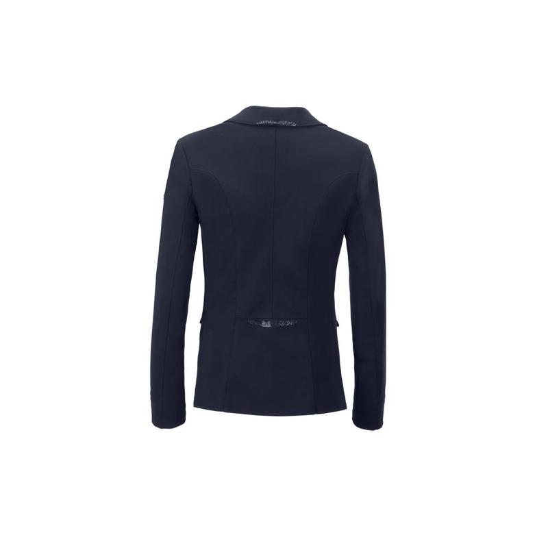 Elegancki klasycznie skrojony frak ujeżdżeniowy z kolekcji wiosna-lato 2025. Z cyrkoniowymi aplikacjami. Fraczek zapinany dodatkowo na zamek. Wykonany z materiału Tech-Jersey.Tkanina siateczkowa na bokach i pod pachami. Podszewka: przepuszczająca powietrze tkanina siateczkowa. Aplikacja z kryształków olimpijskich na kołnierzu, pasie i krawędziach....
