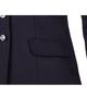 Frak firmy HKM. Wykonany z elastycznego, oddychającego oraz przyjemnego w dotyku materiału rozciągliwego w 4 kierunkach. Posiada dwie kieszonki zewnętrzne i rozcięcie w tylnej części. Wyposażony w ukryty suwak pod listwą z guzikami.Skład materiału:92% poliester, 8% elastan.